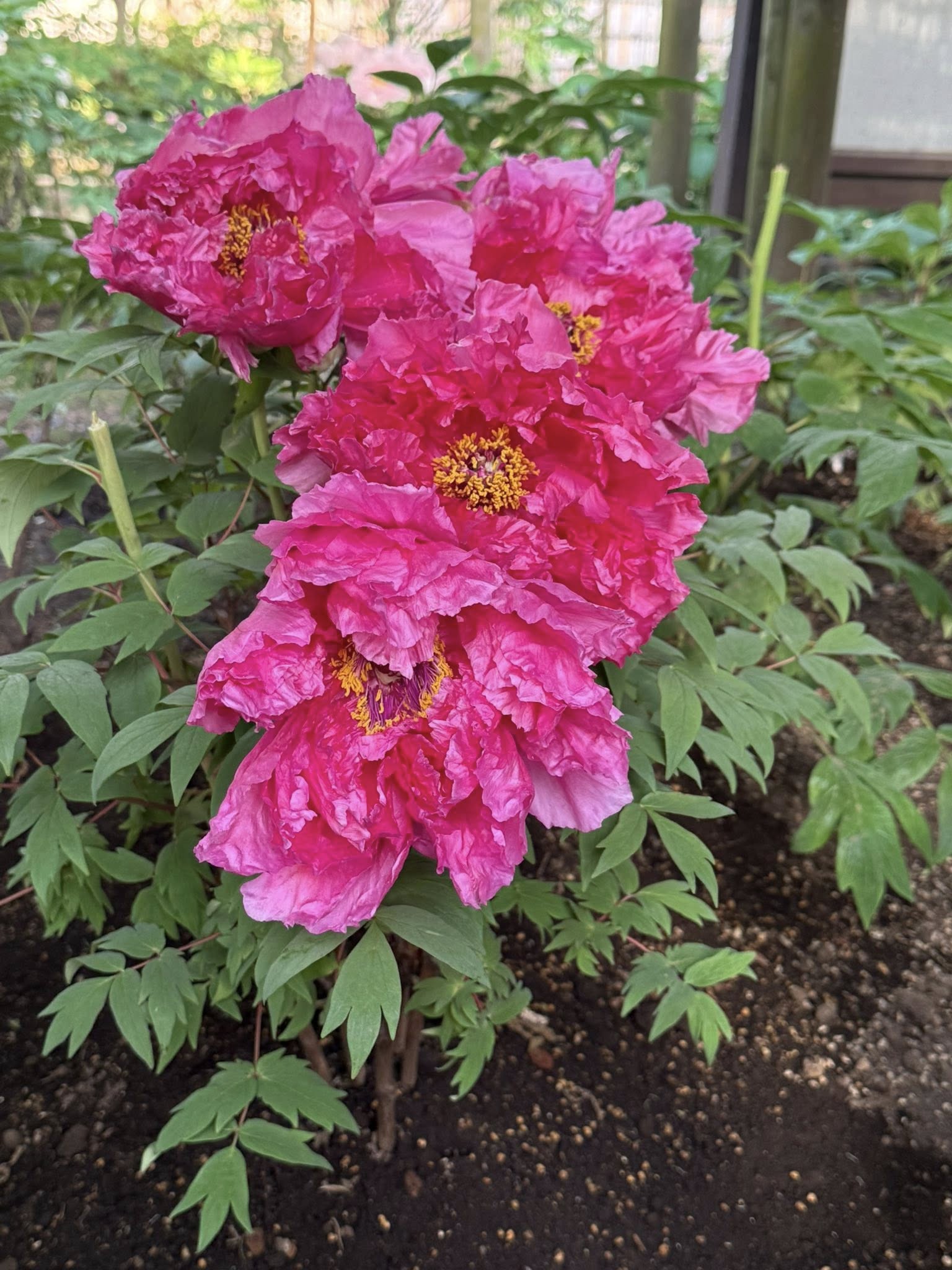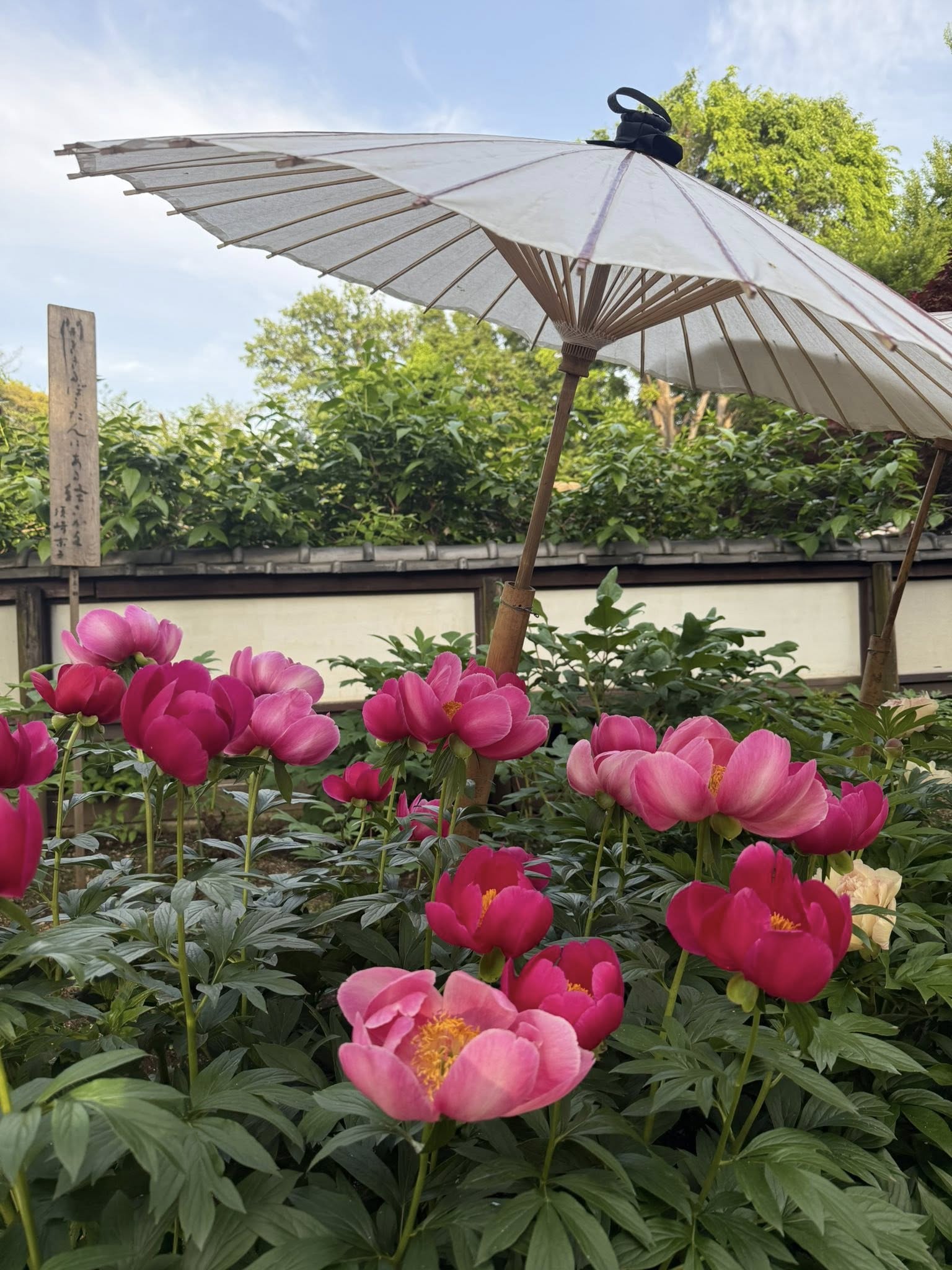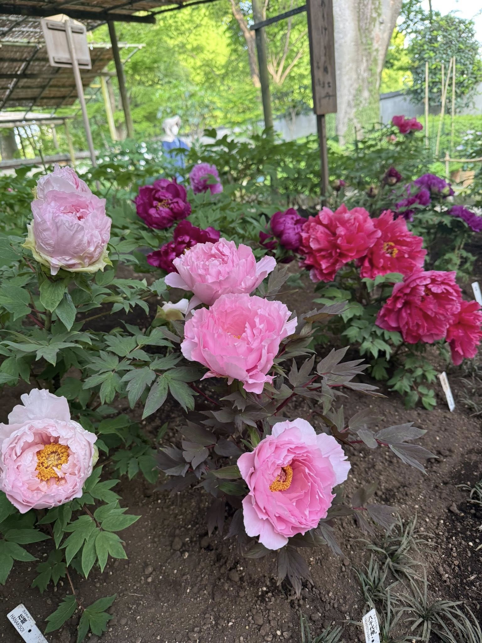 江戸情緒あふれる庭園の中で、中国やフランスなど世界の牡丹が競い合うように美しく咲いていました。
