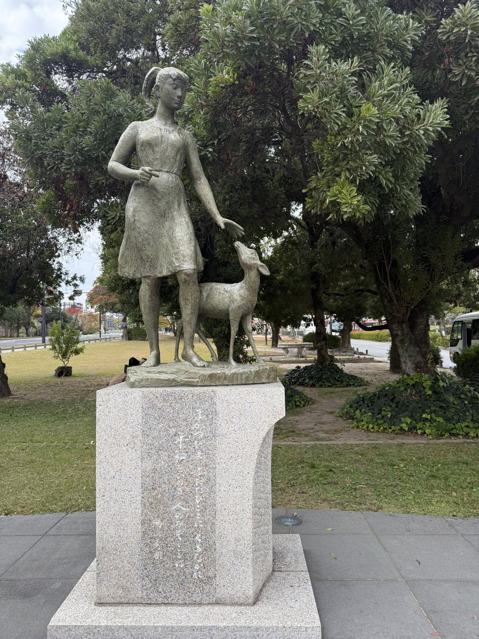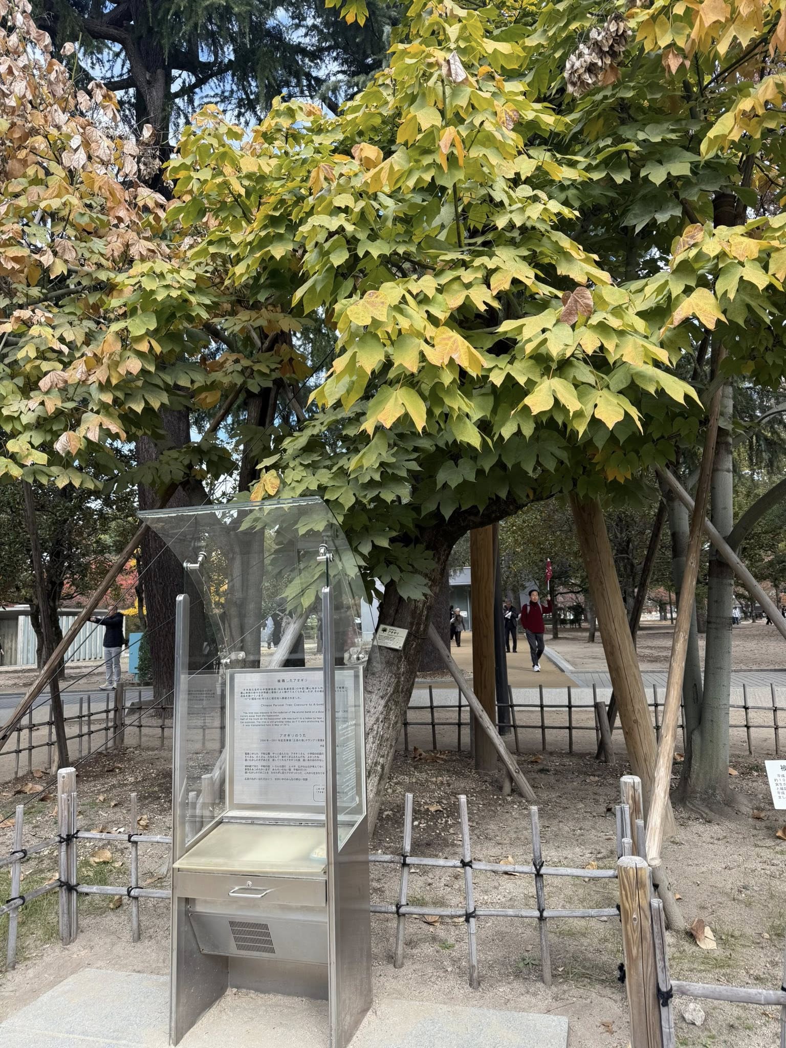 秋の光がこぼれる平和記念公園を、文学碑を巡りながら歩くひととき。