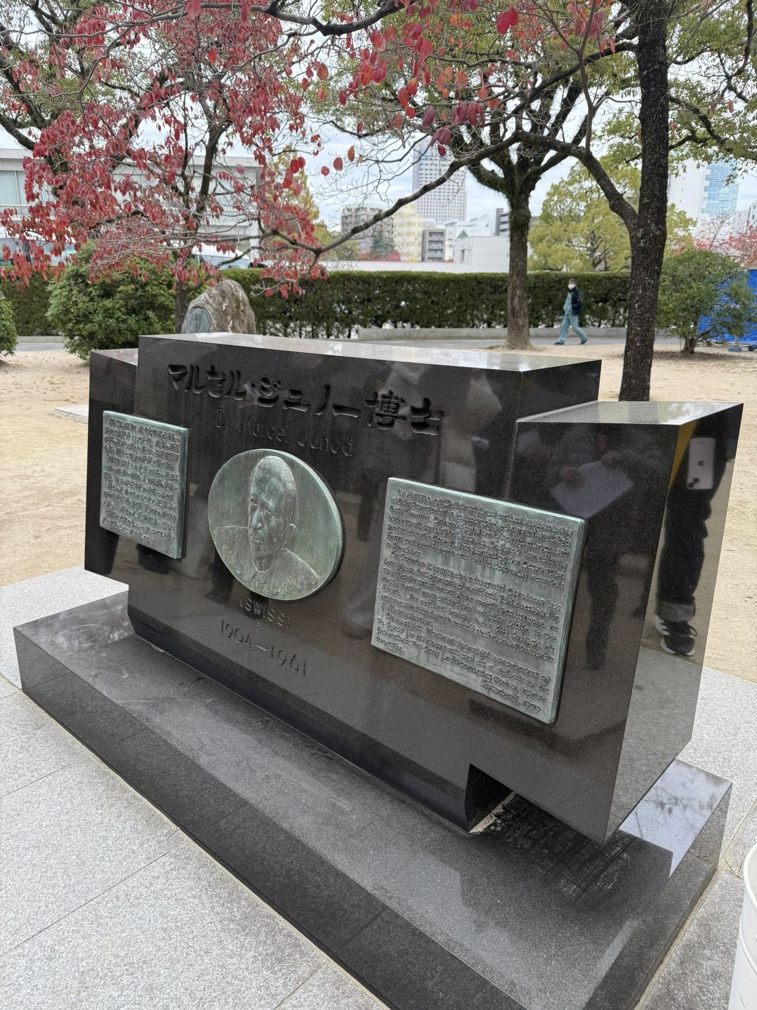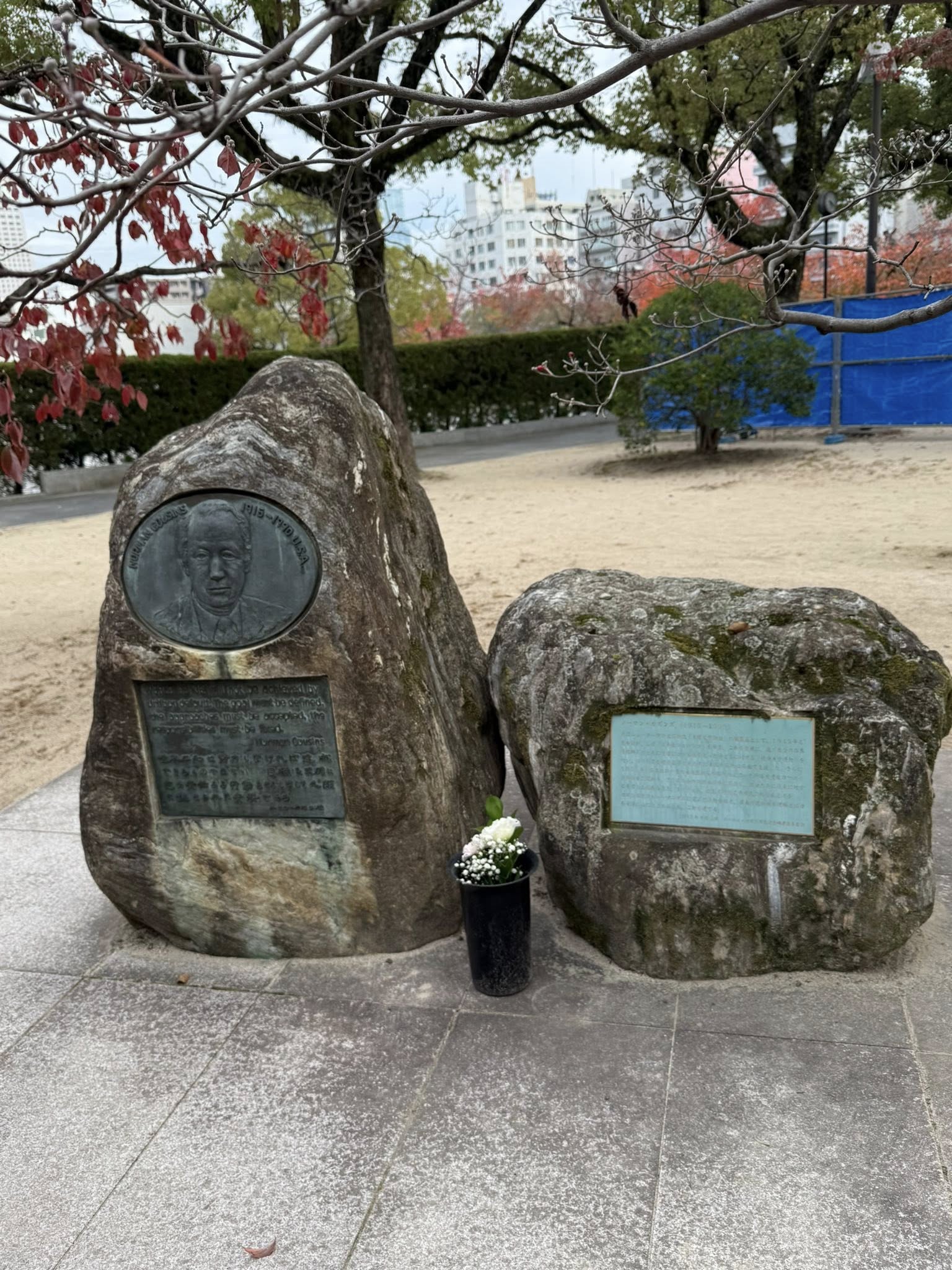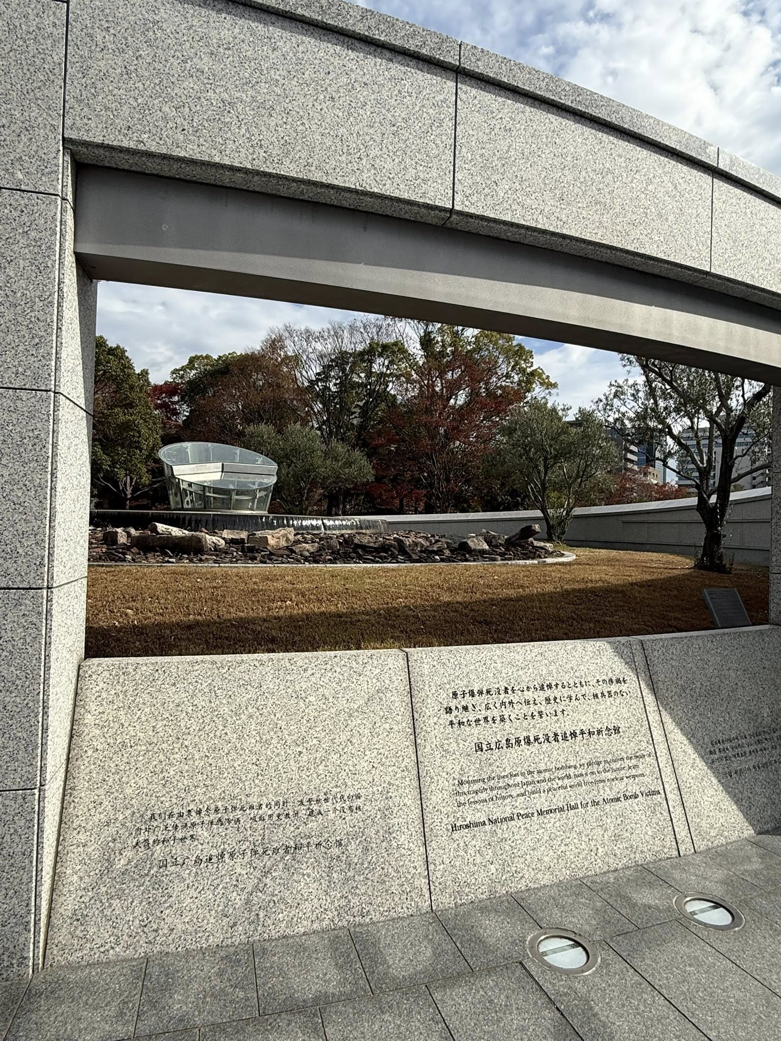 秋の光がこぼれる平和記念公園を、文学碑を巡りながら歩くひととき。